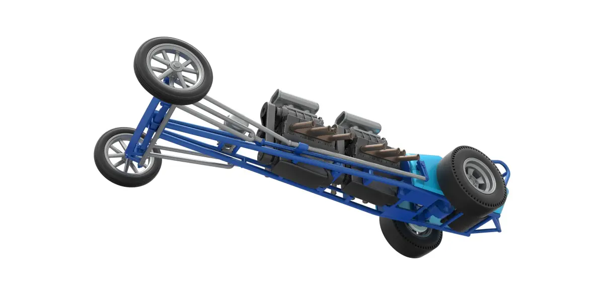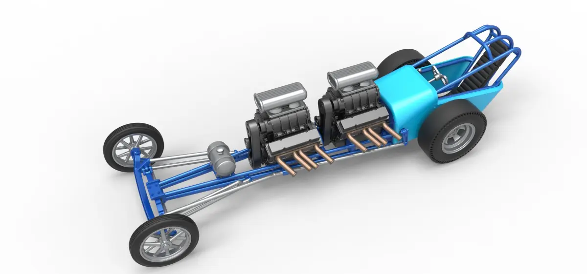 The model consists of parts: Air intake, Body, Engine, Exhaust pipes, Front rims, Front tires, Rear rims, Rear tires, Seat part 1,2, Shell central part, Shell left part, Shell right part, Shell side plate, Shifter, Steering wheel rod, Steering wheel, Tank.