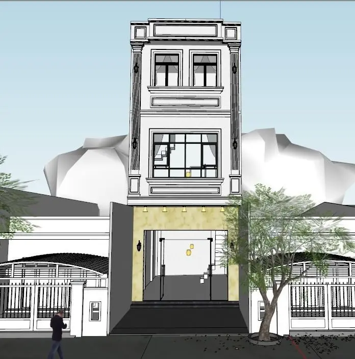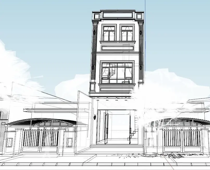 3 story Modern House with front parking lot