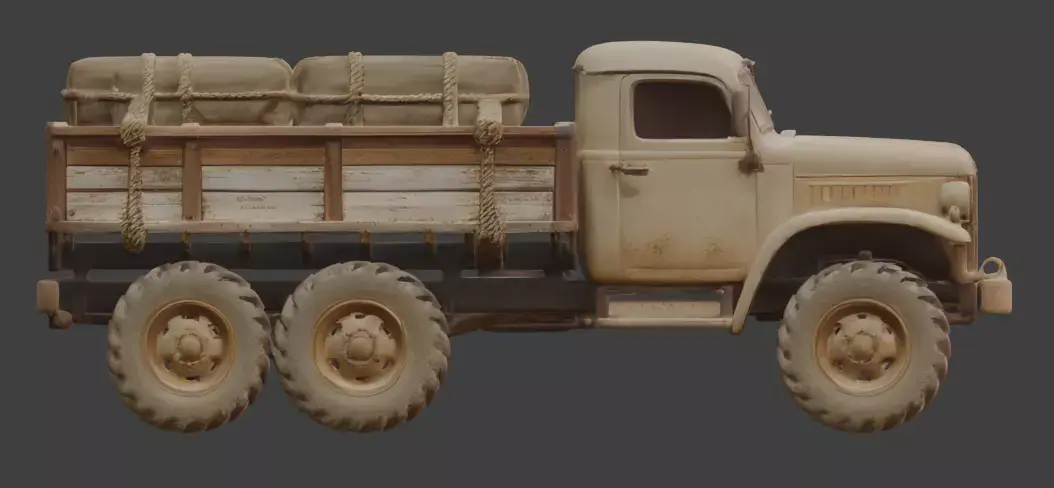 Optimized Geometry: This models is suitable for remesh and decimate to fit various project requirements.trucktransportdesertwastelandfrontierapocalypticvintagewoodencargosupplyoff-roadtiresrustedsandsurvival4x4industrialrugged