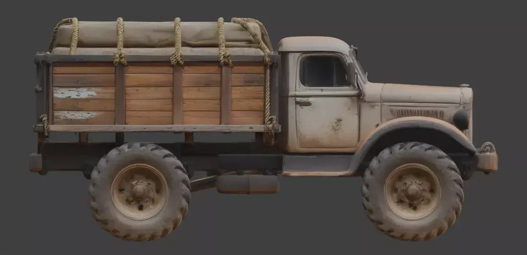 Tags:trucktransportdesertwastelandfrontierapocalypticvintagewoodencargosupplyoff-roadtiresrustedsandsurvival4x4industrialrugged