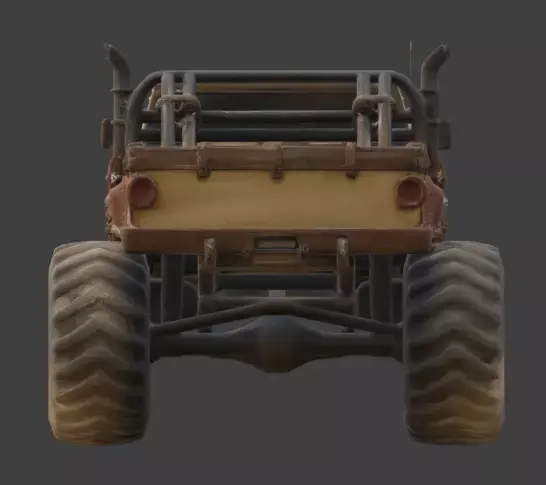 Heavy-Duty Mechanical Parts: Includes a detailed vertical exhaust system, reinforced roll cage, and exposed suspension coils.