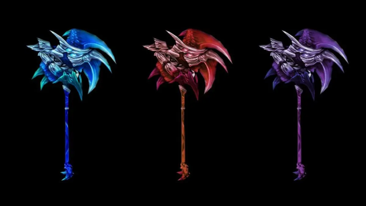 An axe in a frozen/monster bone style that comes with two variants.