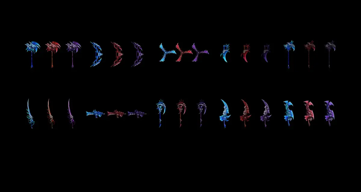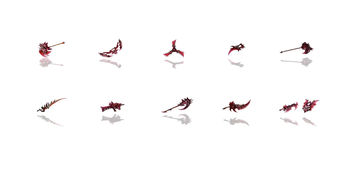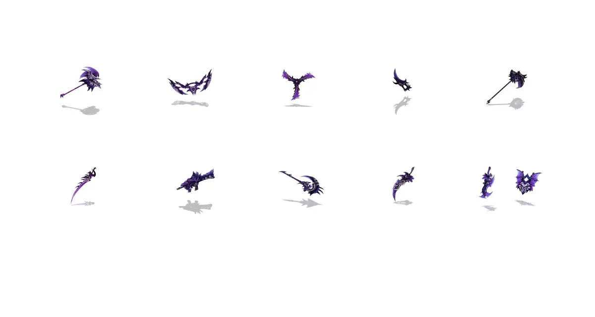 A pack of 10 weapons in a frozen/monster bone style.Each weapons comes with 3 textures, and makes a total of 30 weapons.