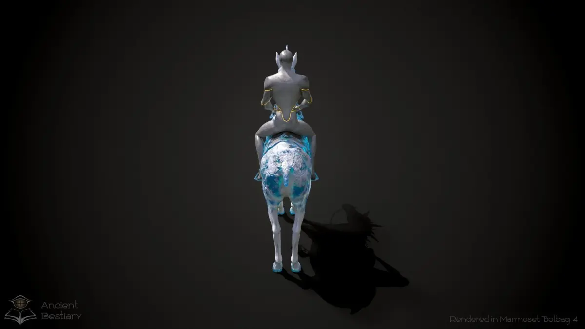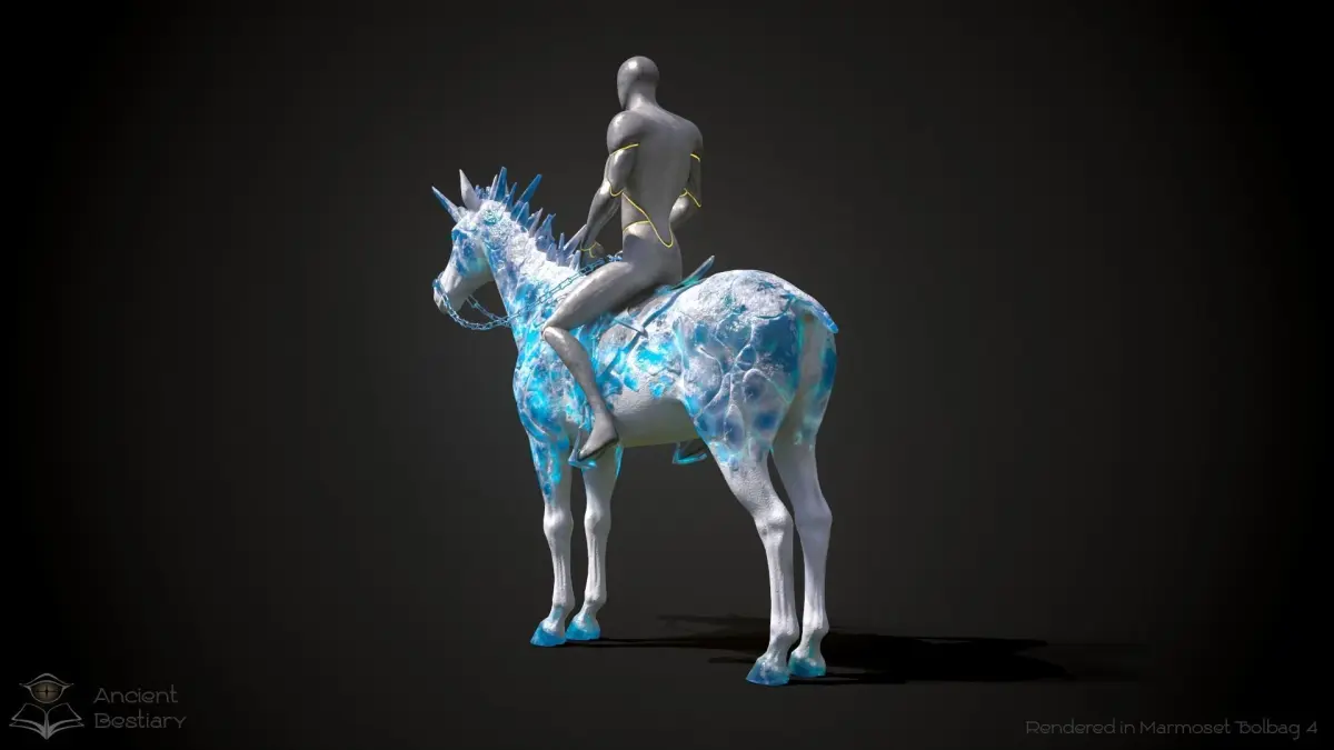 - horse's skeletal mesh (parts: body, jaw, tongue, eyes, crystal hair, nails, reins, saddle, stirrup)