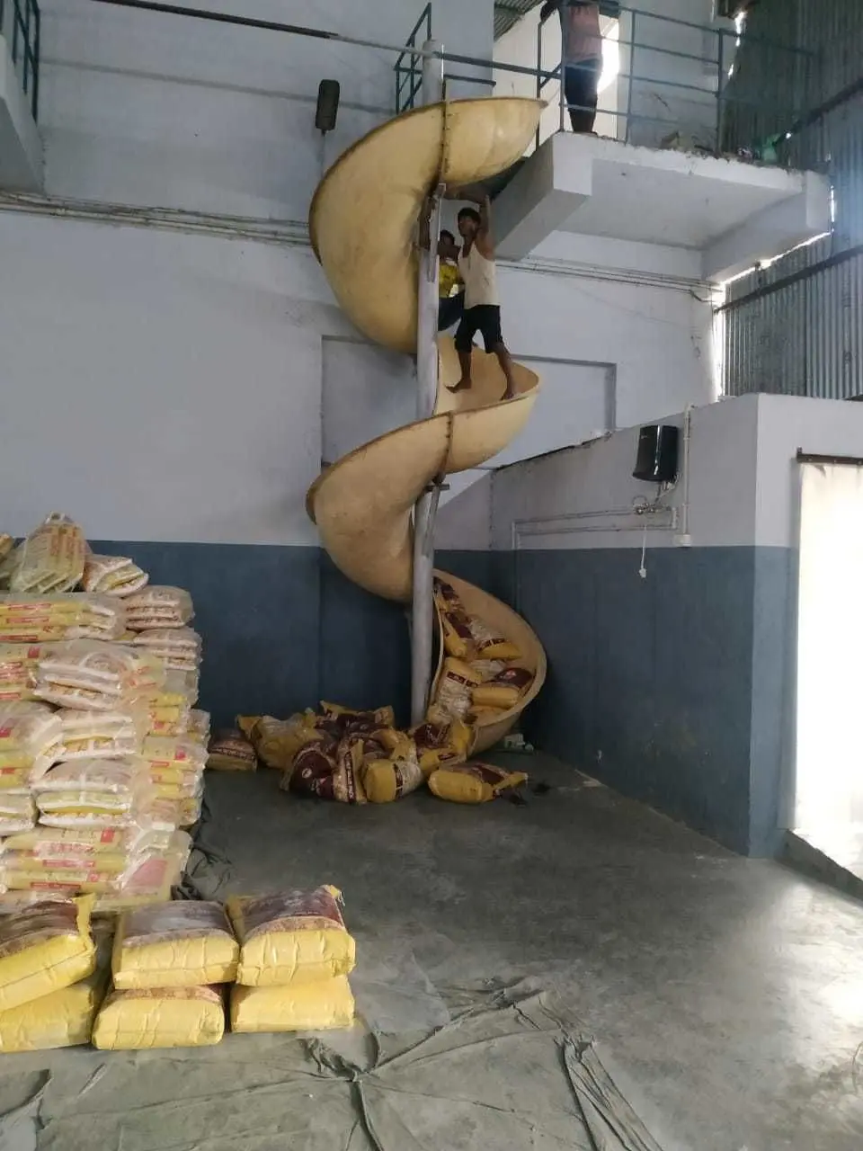 Making the use of gravity FRP Spiral Chute helps to take goods downward.It is maintenance free, saves electricity, saves space and manpower. Spiral chutes are the only option instead of down-comer conveyor.