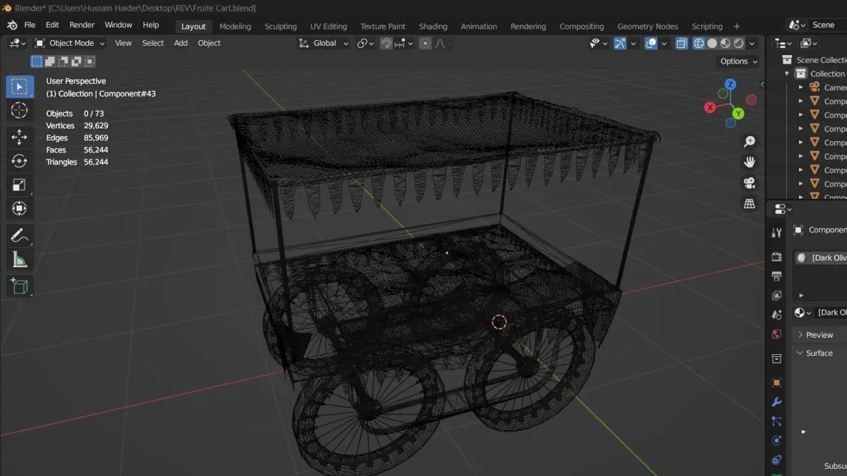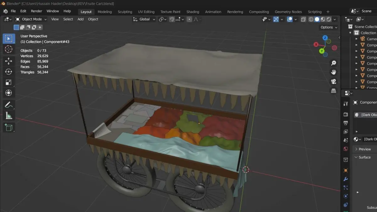 THE 3D Fruits Cart Realistic design for Games Low-Poly design with crafts.