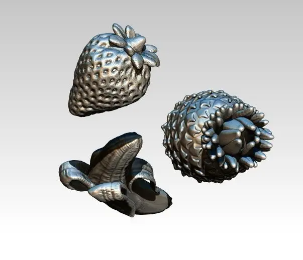 Fruit set Banana Pineapple Strawbery Lot of 3 highpoly models 3D print model