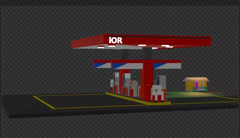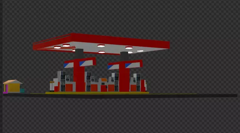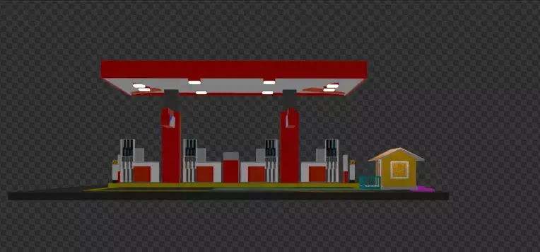 It's a fuel gas station with a small low poly house and 3 petrol filling station with good light in the station roof and (ior) text ligting in the front of the station with a 2 trash cans and small details.It's very good in low-poly use or middle-poly use.The price is not very hight and Good deal.