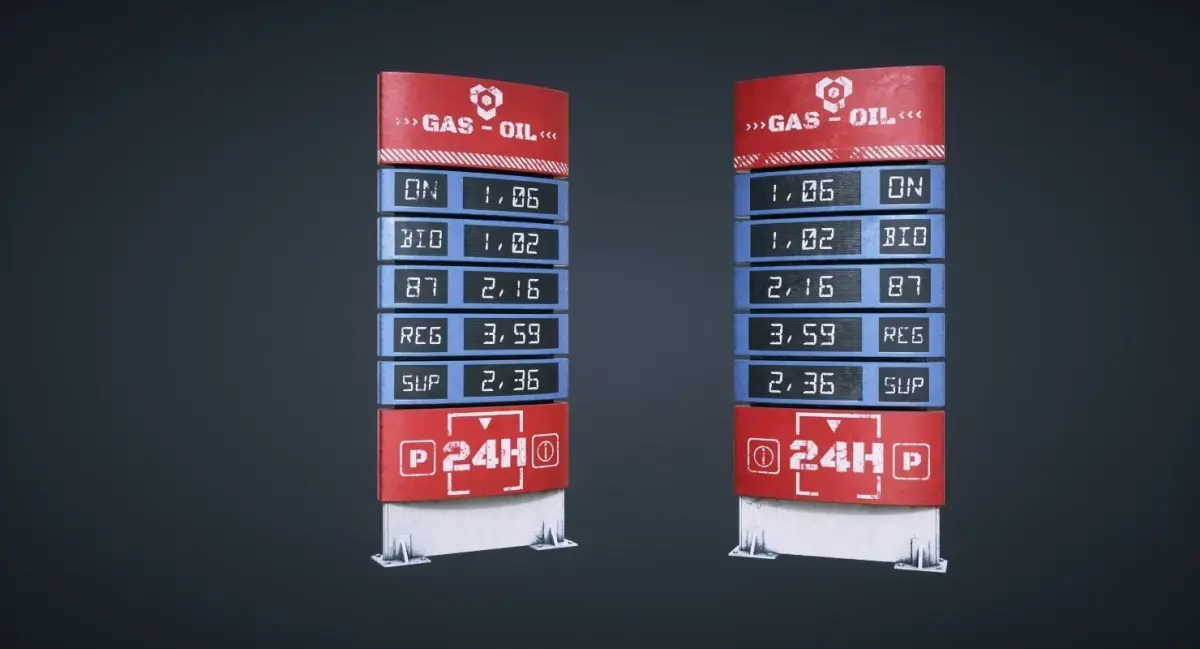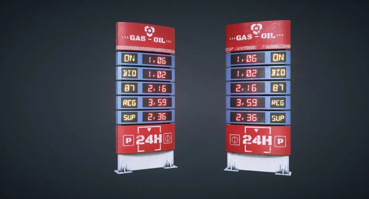 Fuel Price Display 3D Model Ready for Games.