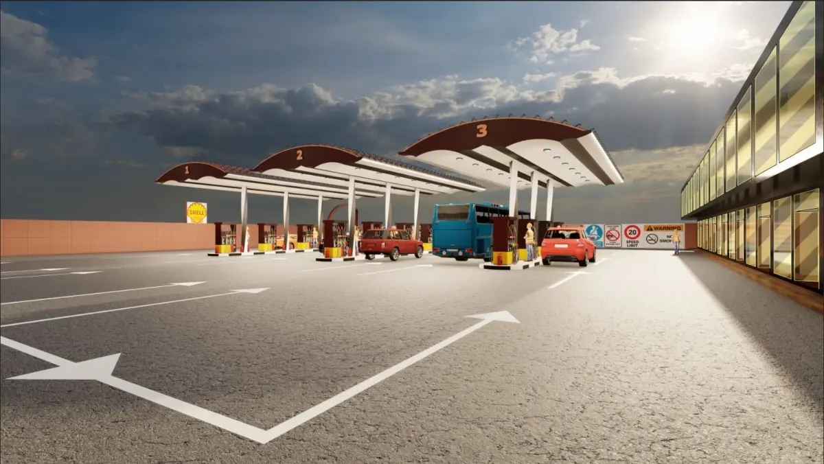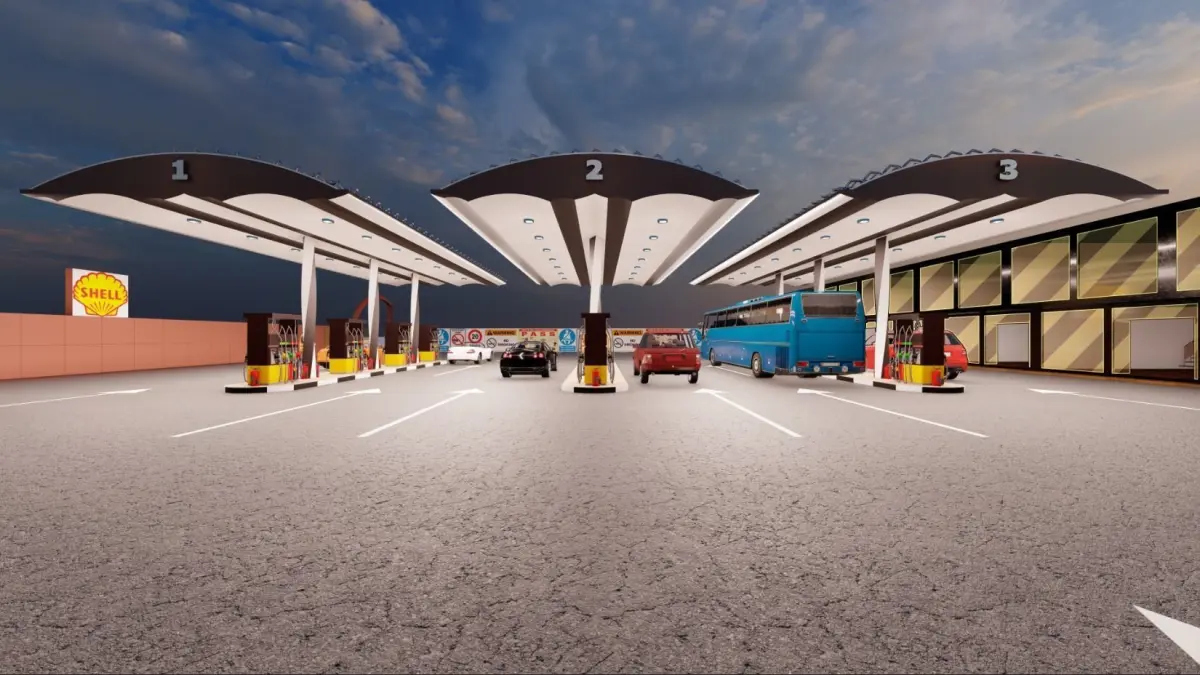 fuel station modeling by sketchup 2017rendered by lumion 10the files attached without cars and people available in (3ds,dwg,obj,skp)total area (50m*50m)contain super market and office and other buildings