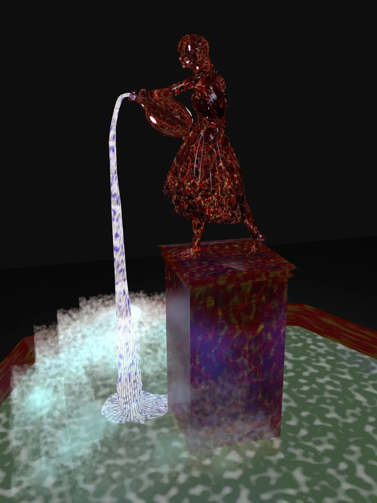 Esta es una modelo que realiza el papel de fuente con textura cycles en blender de marmol cristalino de color rojo
