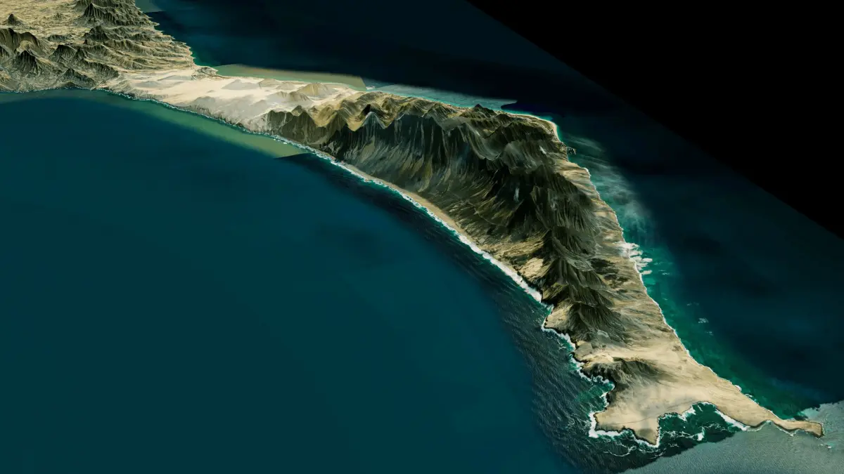 3d model landscape of Fuerteventura Island, Canary Islands, Las Palmas, Atlantic Ocean, Spain.