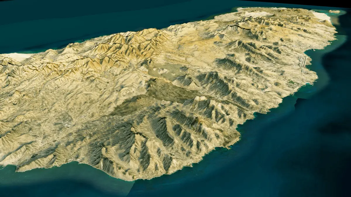 Fuerteventura full Island 3d model terrain. 3d model of the island Fuerteventura with its landscape of mountains, beaches and forests.
