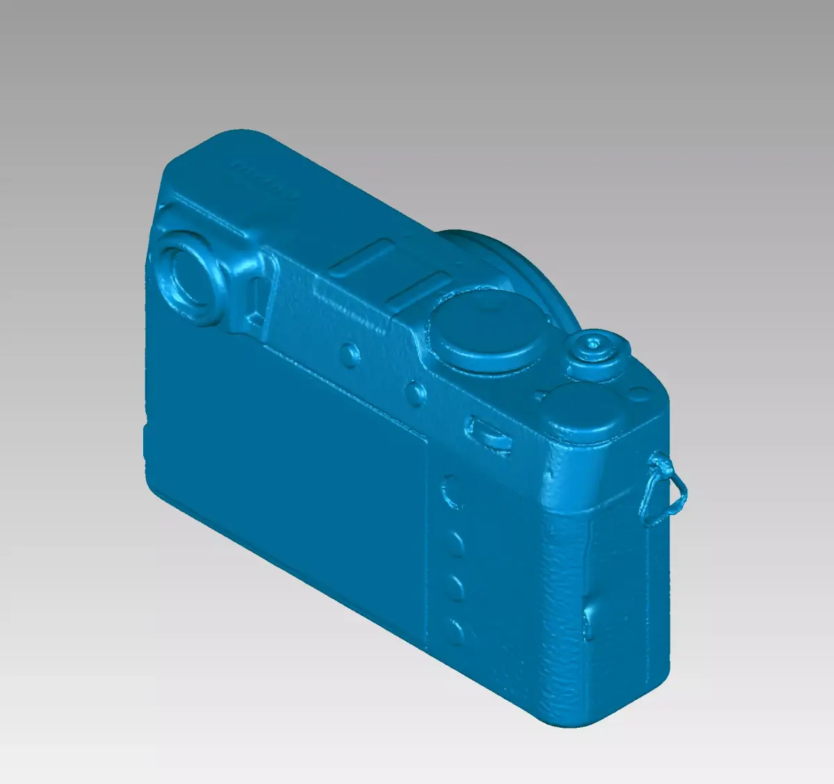 Full 360 degree, high resolution 3D scan of a fujifilm x100vi (with the lens cap on) using a high end engineering grade 3D scanner.