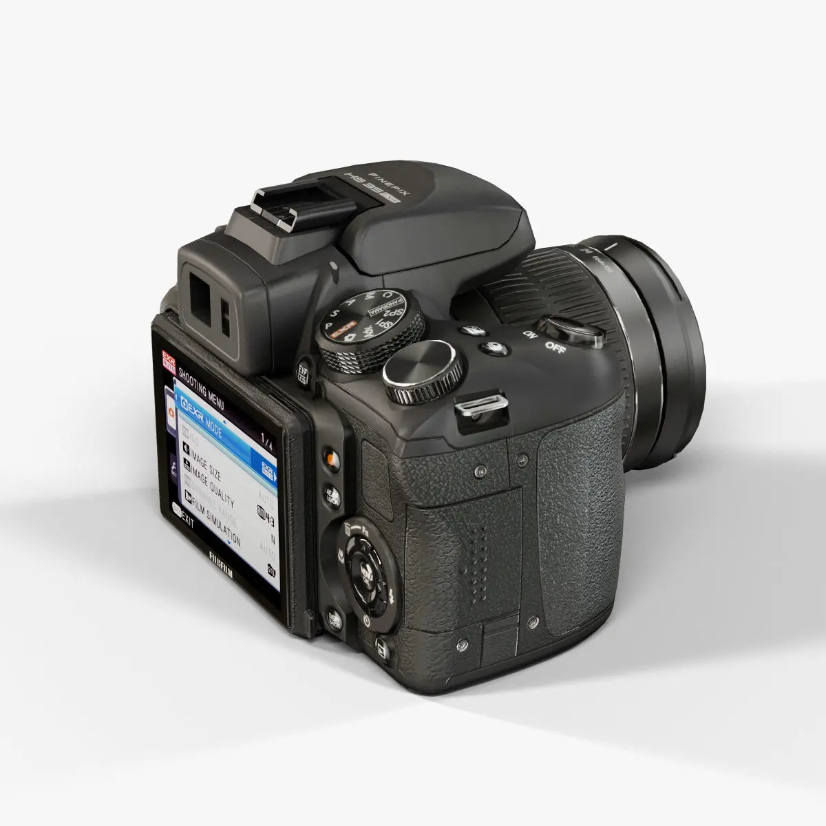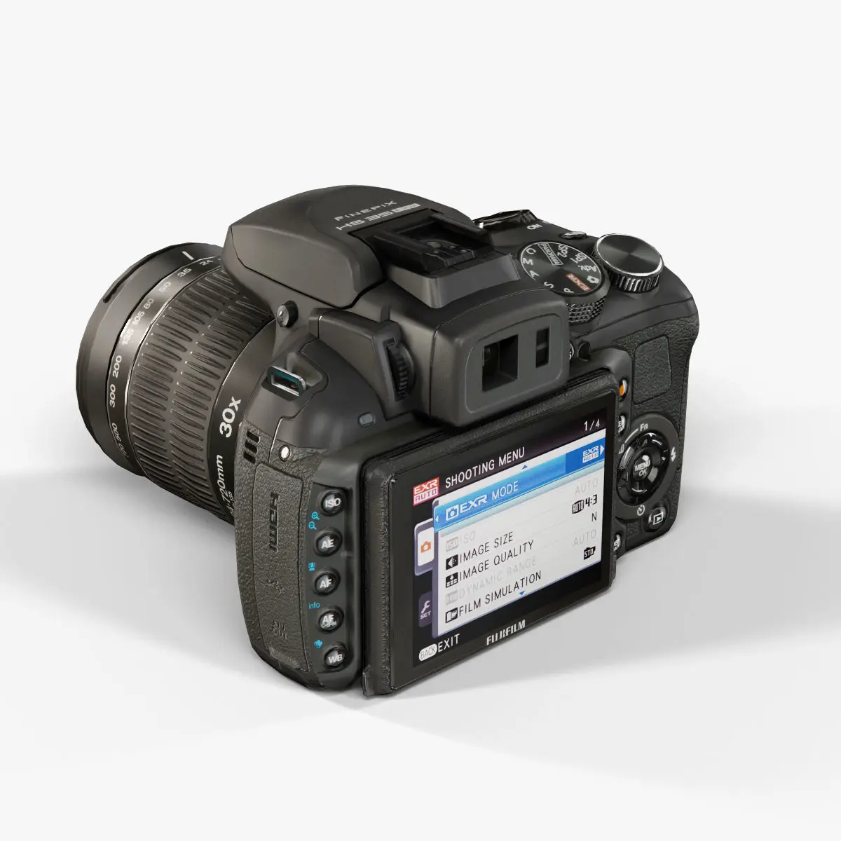 • Let me present to you high-quality low-poly 3D model Fujifilm FinePix HS35EXR Black. This model can be used in various fields 3D Graphics such as game development, advertising, interior design, motion picture art, visualization, etc... Modeling was made with ortho-photos of real camera that is why all details of design are recreated most authentically.