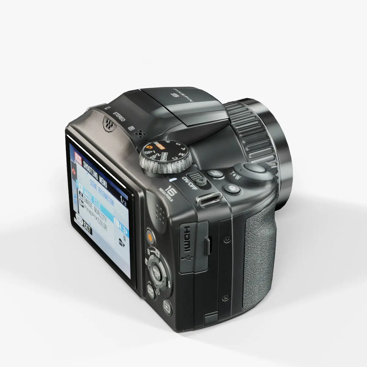 • Let me present to you high-quality low-poly 3D model Fujifilm FinePix S6800 Black. This model can be used in various fields 3D Graphics such as game development, advertising, interior design, motion picture art, visualization, etc... Modeling was made with ortho-photos of real camera that is why all details of design are recreated most authentically.
