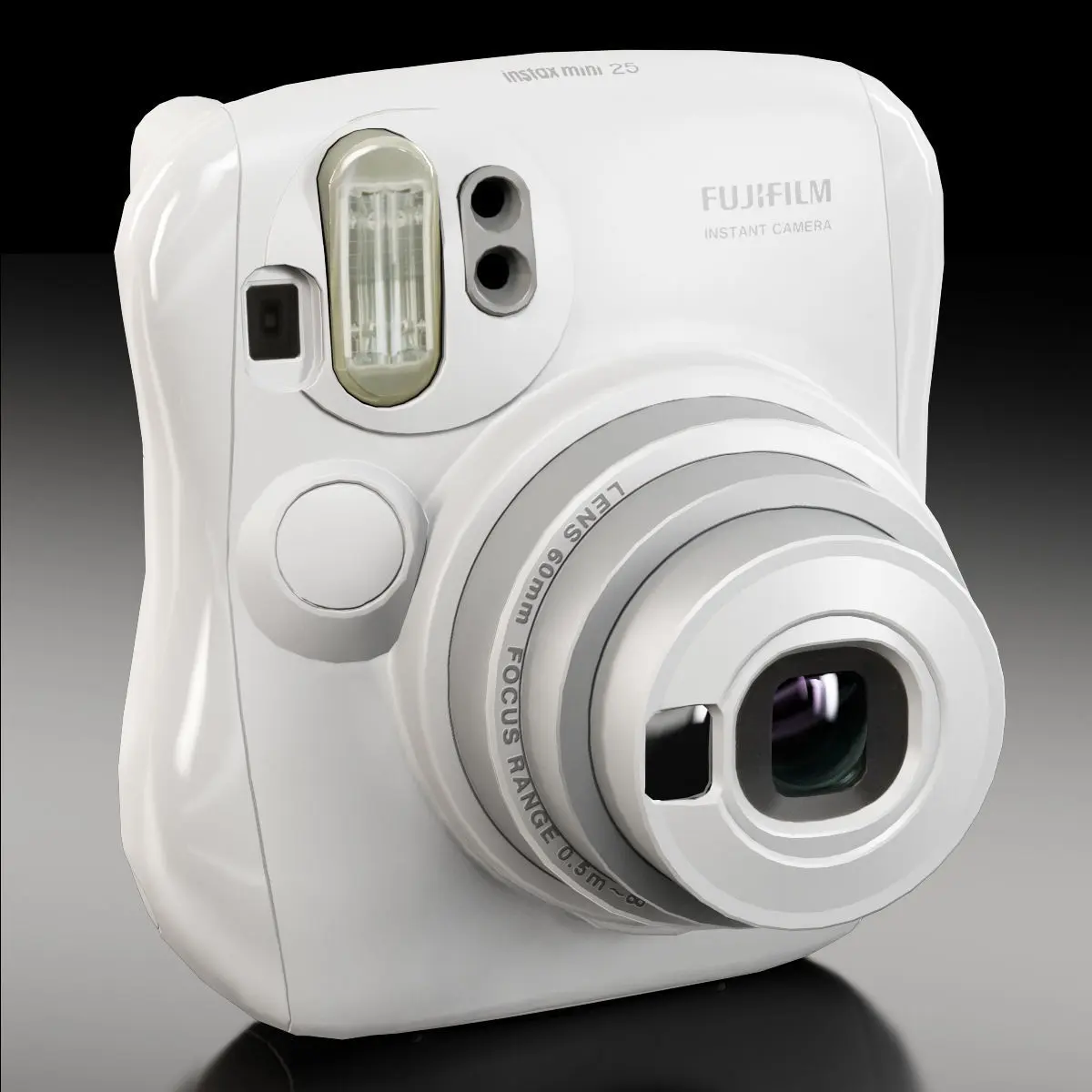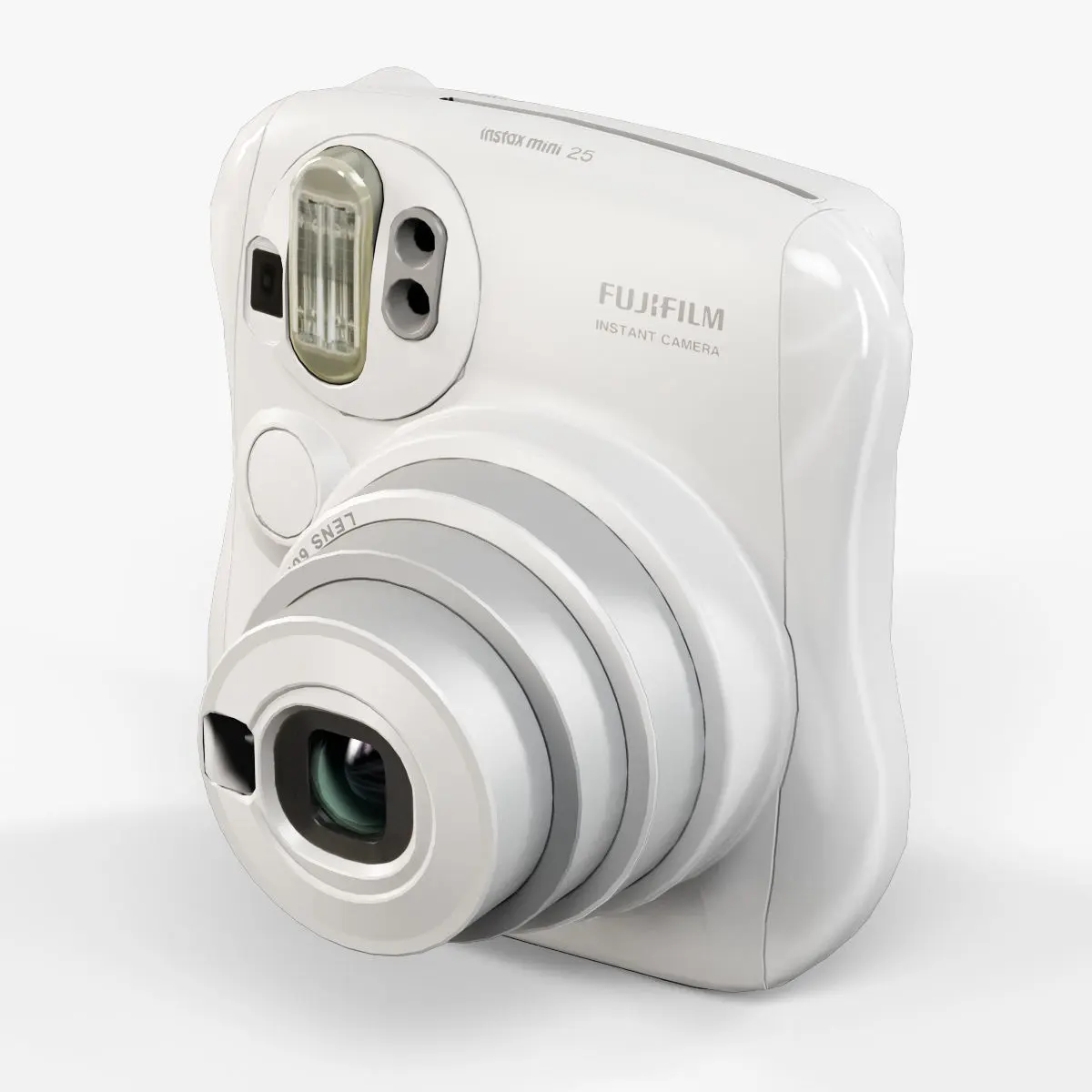 • Let me present to you high-quality low-poly 3D model Fujifilm Instax Mini 25. This model can be used in various fields 3D Graphics such as game development, advertising, interior design, motion picture art, visualization, etc... Modeling was made with ortho-photos of real camera that is why all details of design are recreated most authentically.