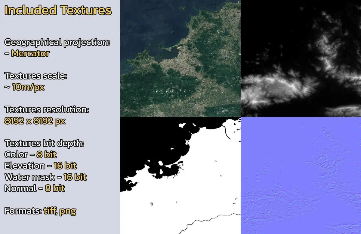 - Textures resolution: ~10m/px