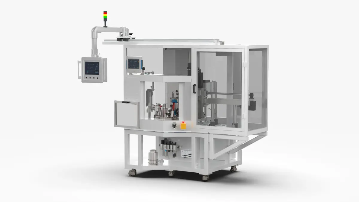 The motor rotor magnetization and synthesis equipment is fully automatic equipment, and the equipment uses a 6-station turntable to complete the following processes: automatic loading and scanning of rotors and end caps, rotor magnetization, magnetization detection, rotor pressing into end caps, and semi-finished products off the assembly line , Fixture cleaning, etc. The equipment is compact in structure and stable in operation.