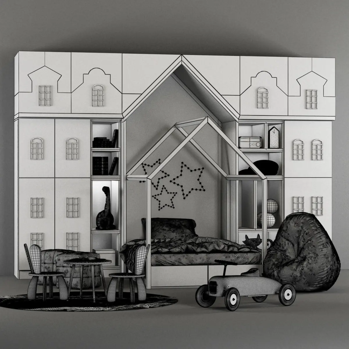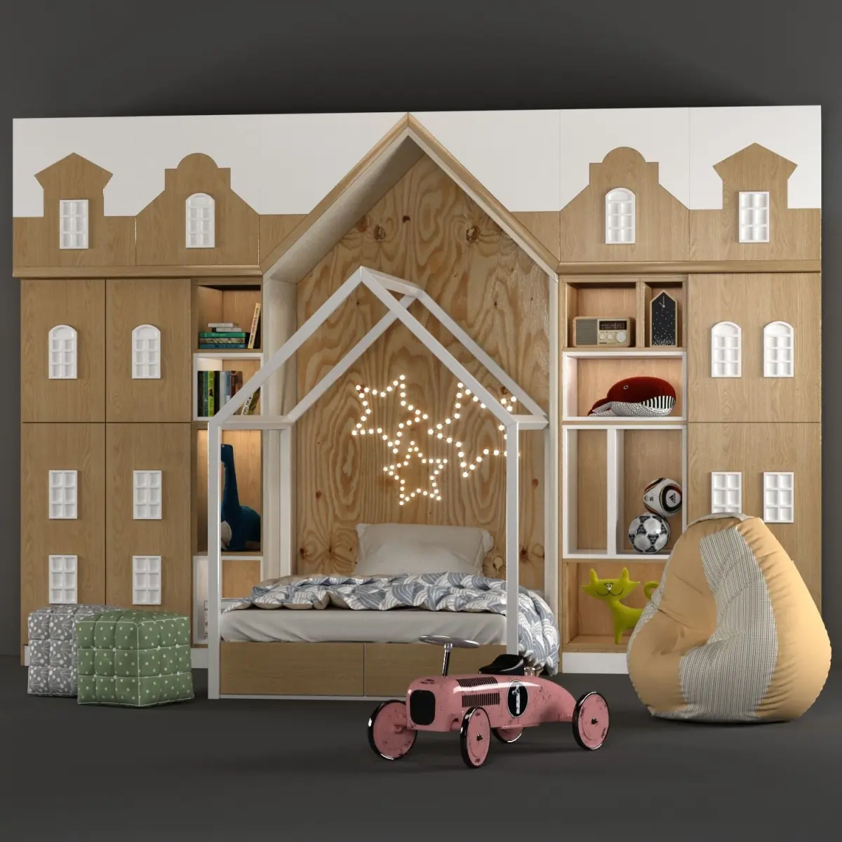 Bed size: length: 136 cm Depth: 205 cmwardrobe size: length: 350 cm Height: 271cm