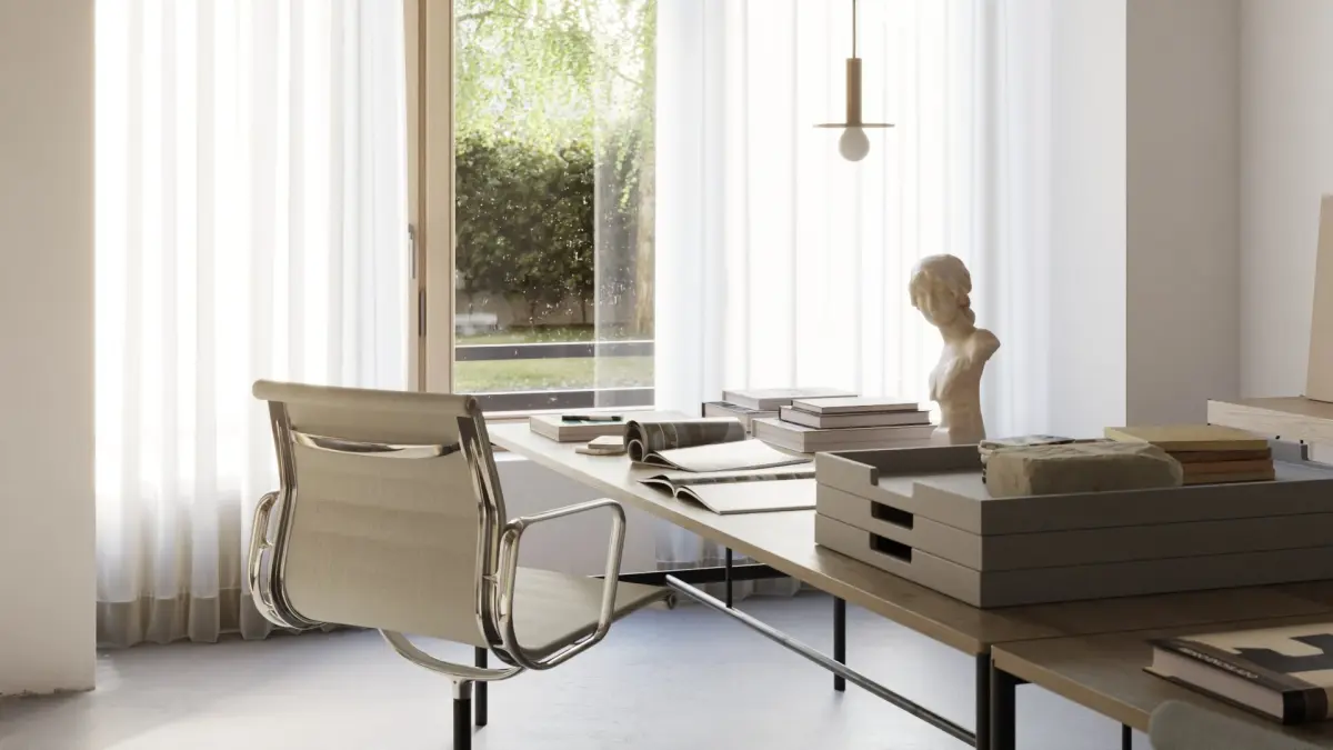 - Numerous models included: Two hyperrealistic modern sofas, design table, benches, and coffee tables, French outdoor furniture, rare and authentic Scandinavian vintage bamboo armchairs and table, retro filter coffee machine, full kitchen, fully furnished design studio with desk, books, magazine, artworks (all of them copyright free), material samples, etc.