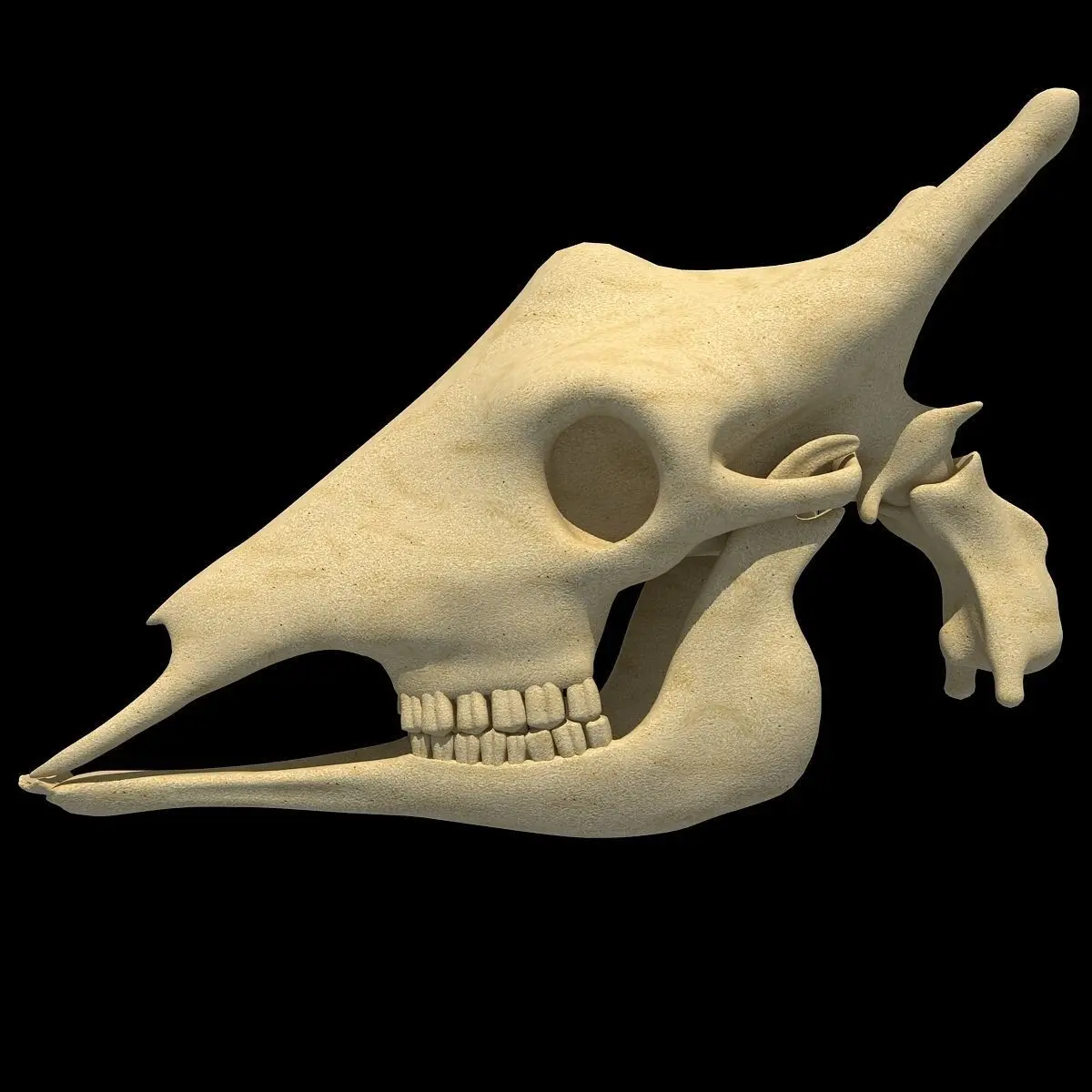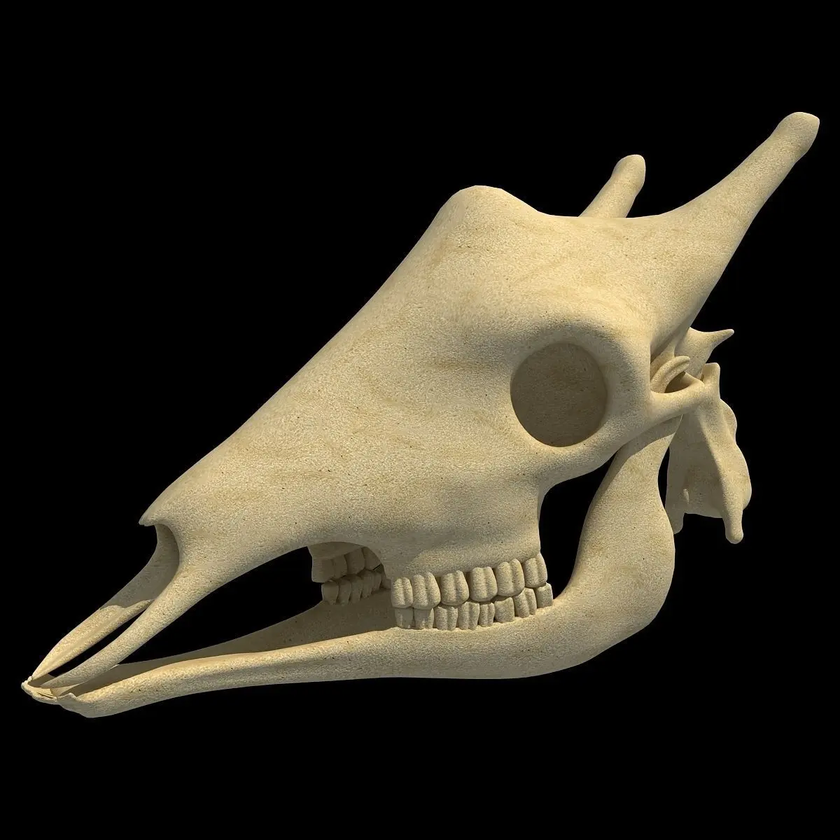 High detailed 3d model of giraffe skull.Textures are high-resolution jpeg images, resolution 1440 x 1000 for both diffuse color and bump color.3ds Max file included 2 versions: Vray and standard materials.Previews were rendered with VRay.