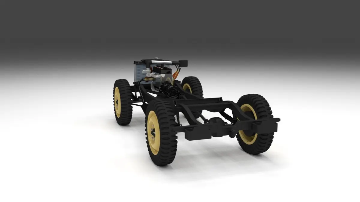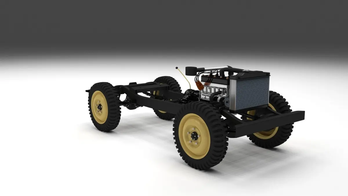 A very accurate model of a Full Jeep Willys Chassis, with engine, brakes, transmission and suspension(as seen in images).