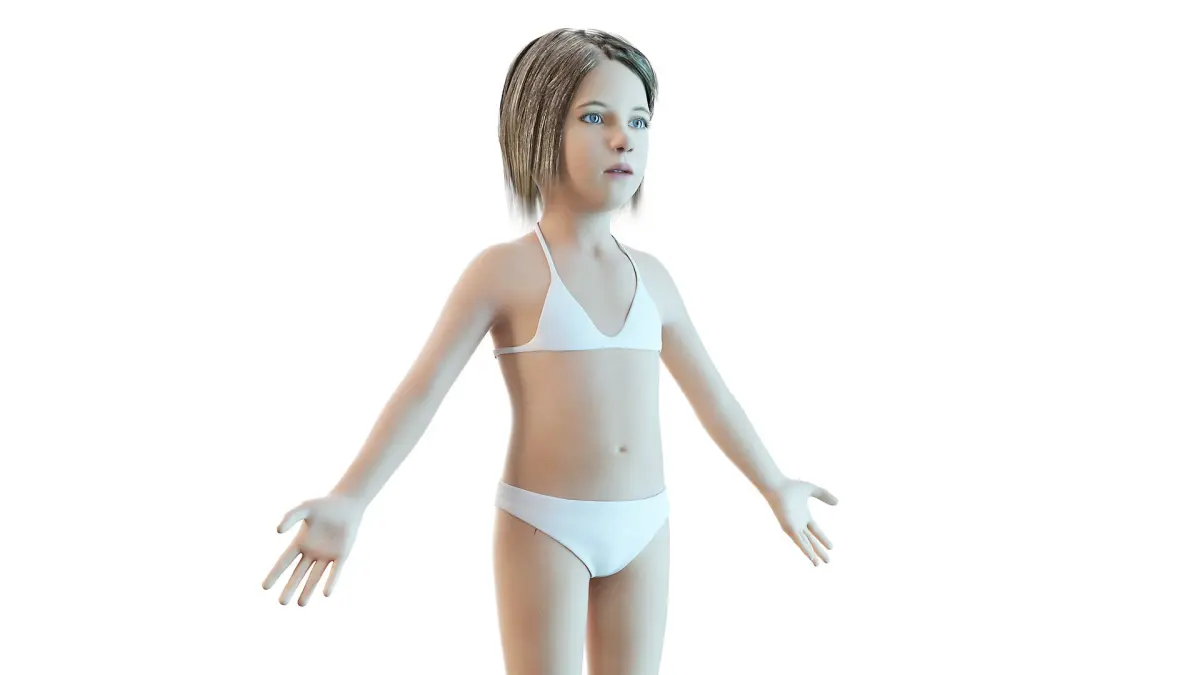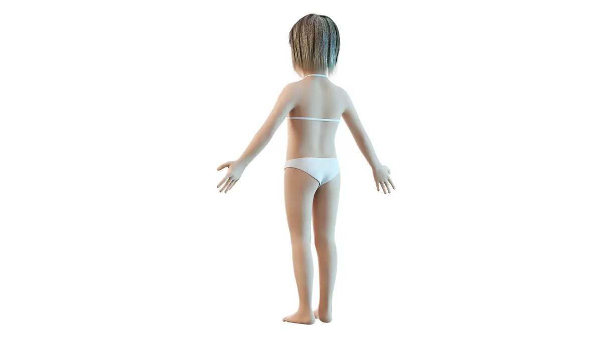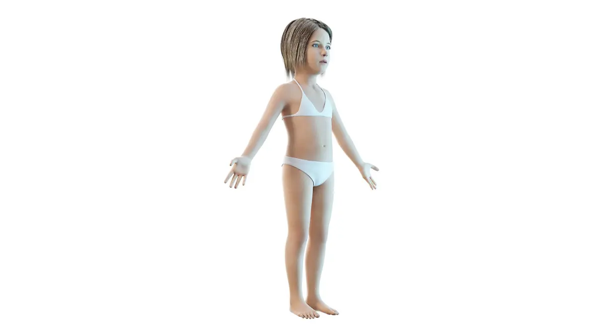 This is a high-end photorealistic 3D model of Full Kid Girl Anatomy Static in Cinema 4D