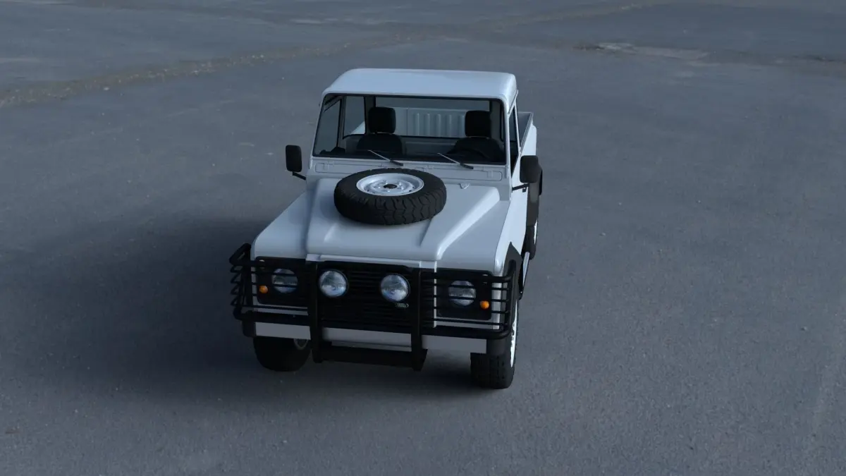 A very accurate model of a Land Rover Defender 90 Pick Up with a HIGHLY DETAILED INTERIOR AND CHASSIS, WITH ENGINE, GEARBOX, EXHAUST, SUSPENSION AND BRAKES MODELED.