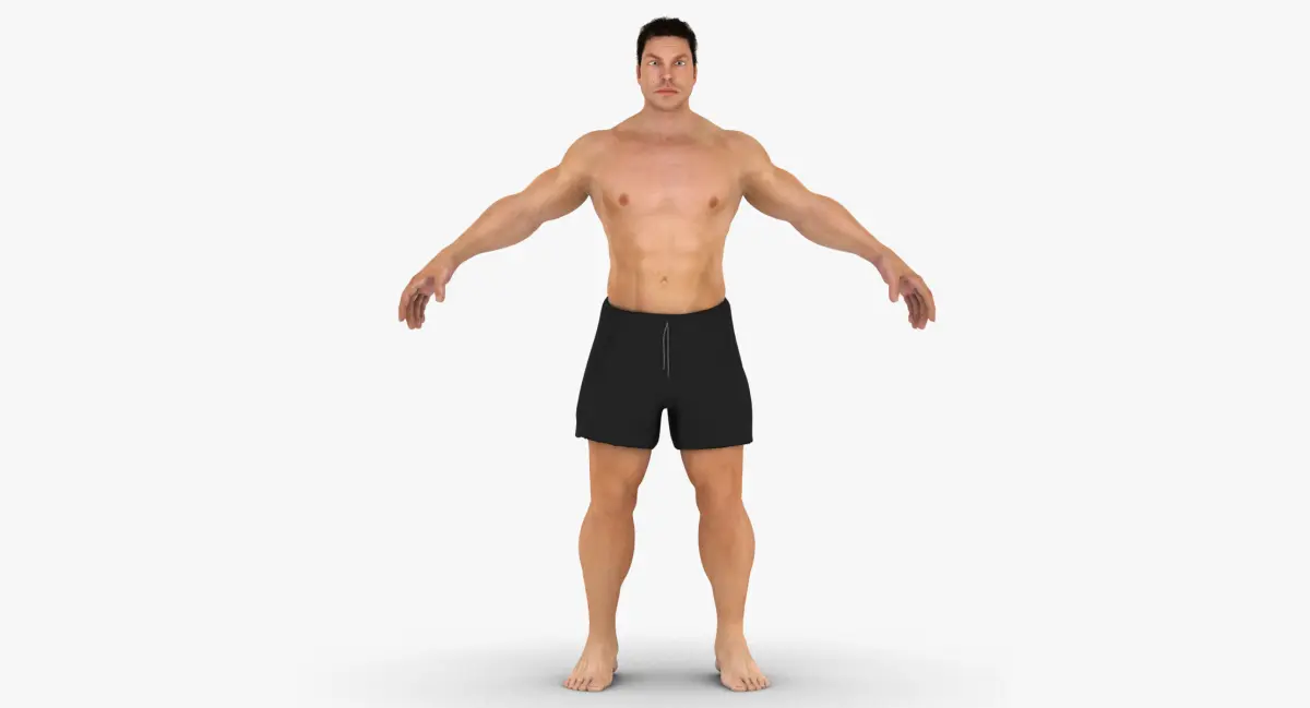 Jake (Rigged)==FEATURES==-Rigged (Full body custom biped rig with Blend shapes)-Facial Blend shapes (Open Mouth, Smile, Frown, Left Eye Close, Right Eye Close)-Real World Scale (6 feet 2 inches, 1.89 meters, 74.6 inches)-GUI (Facial Blend shapes, Finger Control, Rig Visibility, Genital Visibility)-Displacement map for extreme detail-Clean edge-loop based topology-Light set up ready to Render-Polygon Hair - No Plugins Required