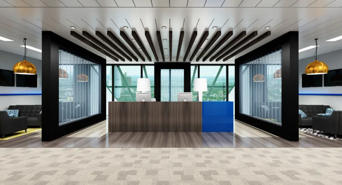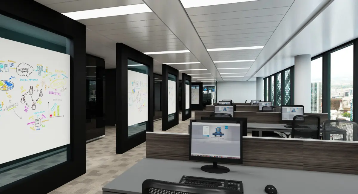 Detailed full office interior scene.