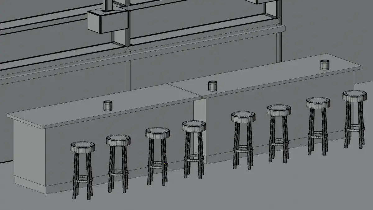 Step into a complete Modern Bar Corner, featuring stool, bar table, lighting, and a styled interior setup. A time-saving asset for anyone who needs a ready-to-render scene.