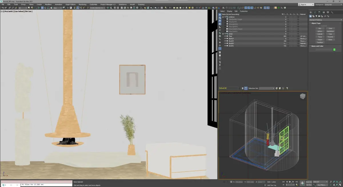This 3d model has a fully textured, detailed interior design scene. Includes camera, light, preconfigured material shader and render setting for launch rendering on Vray-5.
