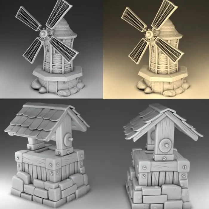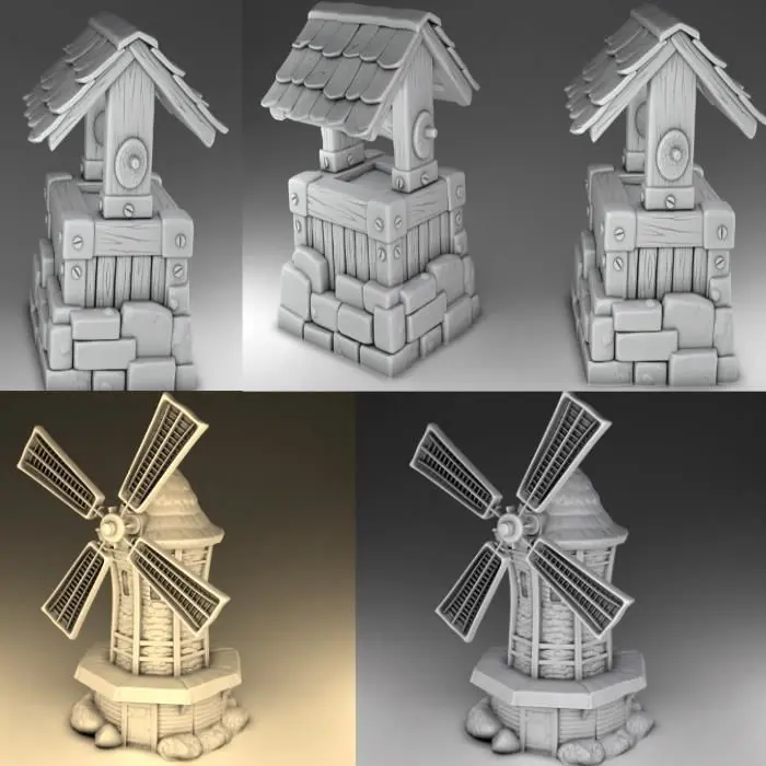 Full set - Mill and the well.Irreplaceable interior items of a village street.Create your own unique farm or village. Surprise your friends. Ideal for board games.