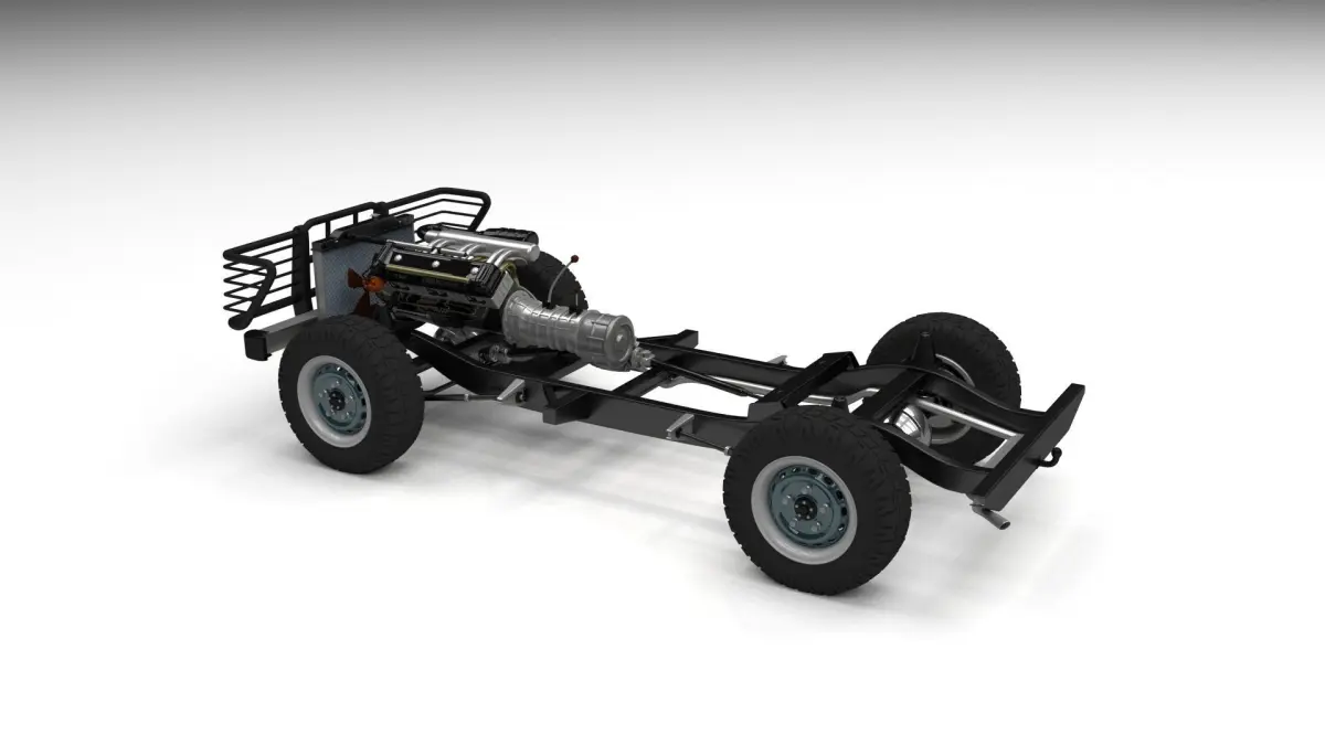 A very accurate model of an Offroad Car Chassis. The chassis is fully modeled, with engine, radiator, differential, axles, drive axles, suspension, brakes and exhaust.