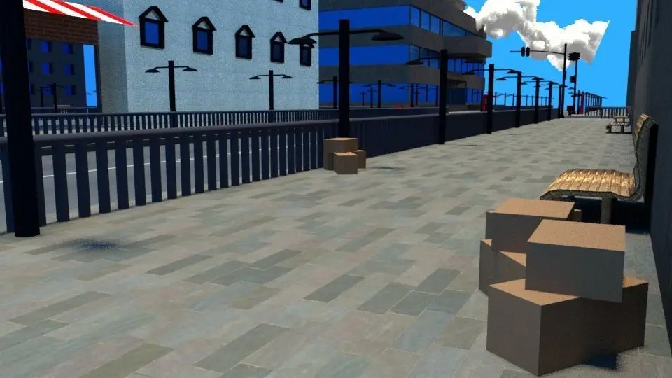 This is a full textured city model with realastic textures. The following model contain - a small street shop, 5 big buildings, realastic textured road, benches, light lamps, traffic lights, ETC. And many more. Enjoy!!!