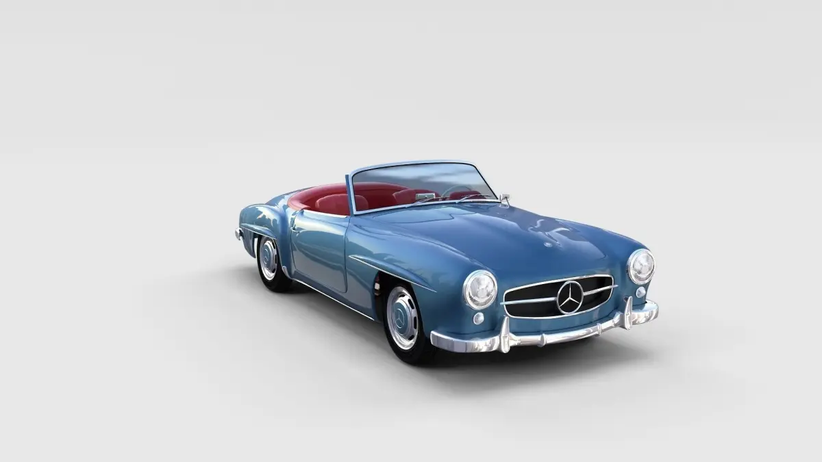 A very accurate model of a Mercedes 190SL with a HIGHLY DETAILED INTERIOR AND CHASIS, WITH ENGINE, TRANSMISSION, SUSPENSION, EXHAUST AND BRAKES MODELED.