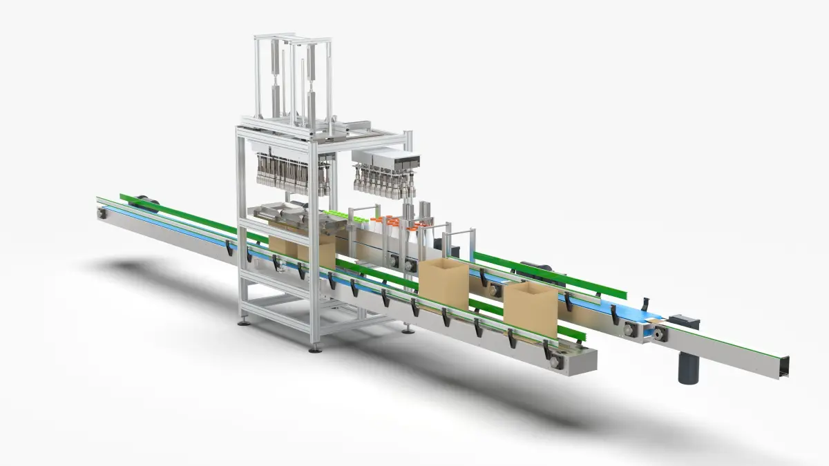 This is a fully automatic box packing machine, which uses translational grabbing and grabbing straight-down methods for boxing. It has a complete structure, including plate chain conveyor lines, main profile frames, quick-change grippers, etc. The content is rich and complete, and it belongs to the overall boxing process. The scheme has a high reference value in the same industry and can be edited directly, which is absolutely worth the money.