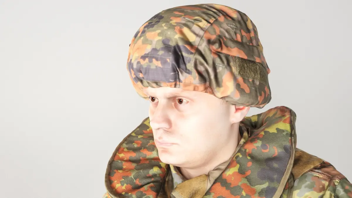 - helmet with cover and tactical mask on