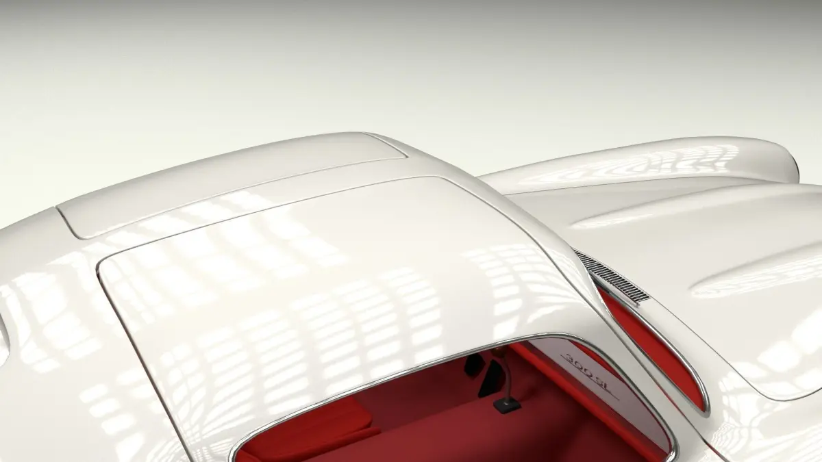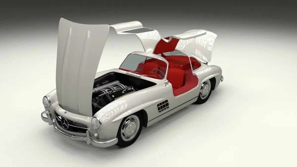 A very accurate model of a RIGGED Mercedes 300SL Gullwing W198 with a HIGHLY DETAILED INTERIOR AND CHASIS, WITH ENGINE, TRANSMISSION, SUSPENSION, EXHAUST AND BRAKES MODELED.