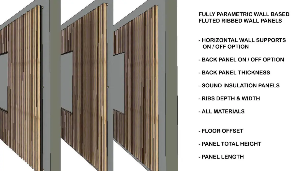 This fully parametric fluted ribbed panel family will ensure efficiency, creativity, and precision with your revit models.