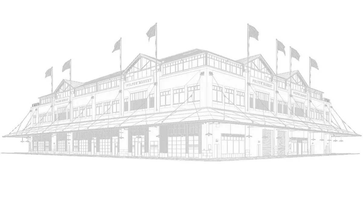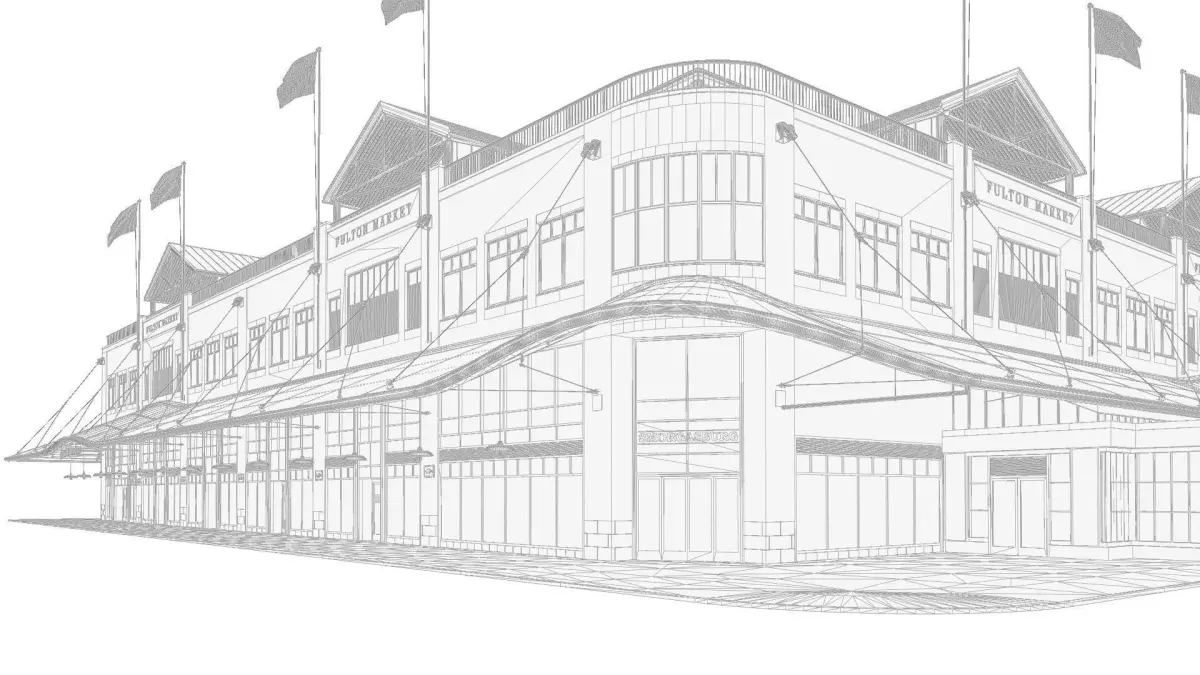 3d model of a historic building in downtown New York. This is the so-called Fulton Market at Beekman St., which is housing many shops. It can be used as a shopping mall, a large grocery store or a conference / exhibition center.