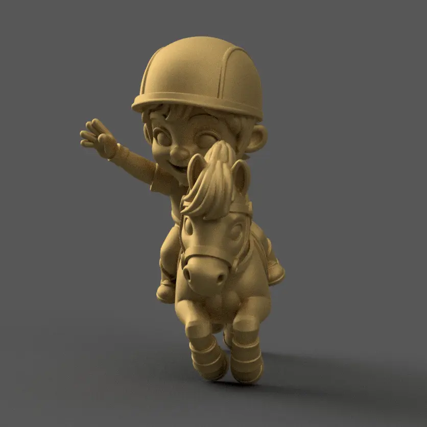 Design PhilosophyThe model showcases a playful pony and rider in an animated pose, capturing the joy and excitement of horse riding, suitable for children’s decorative purposes.