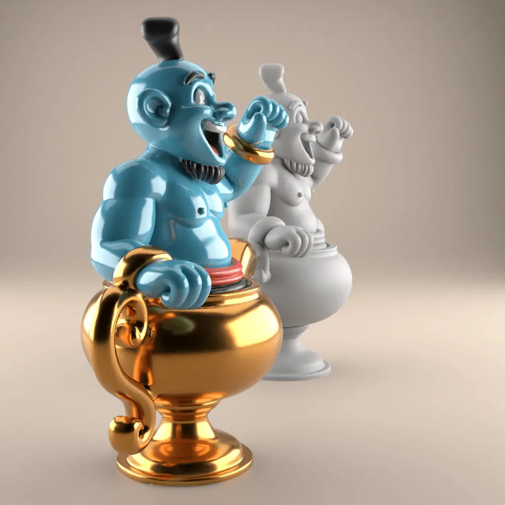 Printing SuggestionsUse a high-quality PLA with color to enhance the vibrant charisma of the genie. Layer height of 0.1 - 0.2 mm is recommended to retain detail, especially around facial features and the lamp's intricate design.