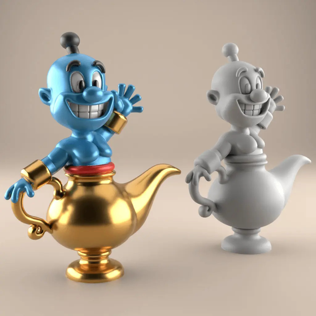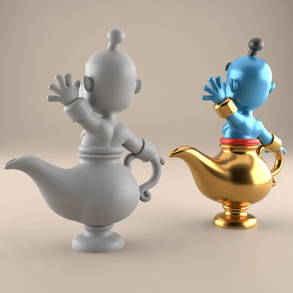 Assembly InstructionsPrint the genie and lamp as separate parts if necessary. Ensure proper fitting by checking the joints during assembly. Some adhesive may be required to secure the figure inside the lamp depending on the fit.