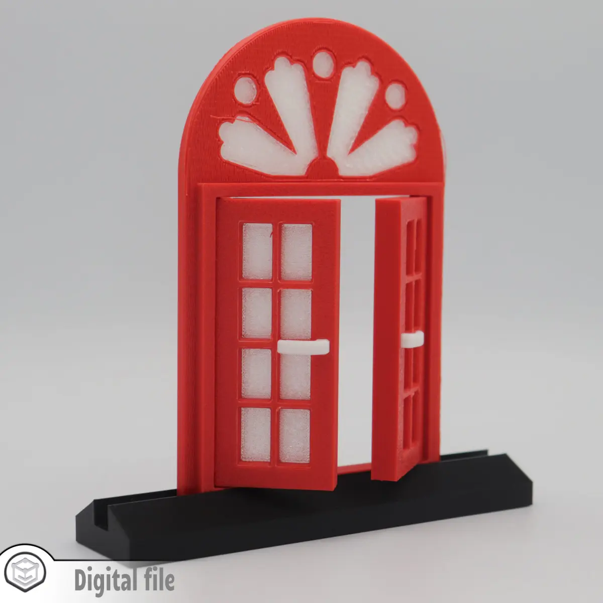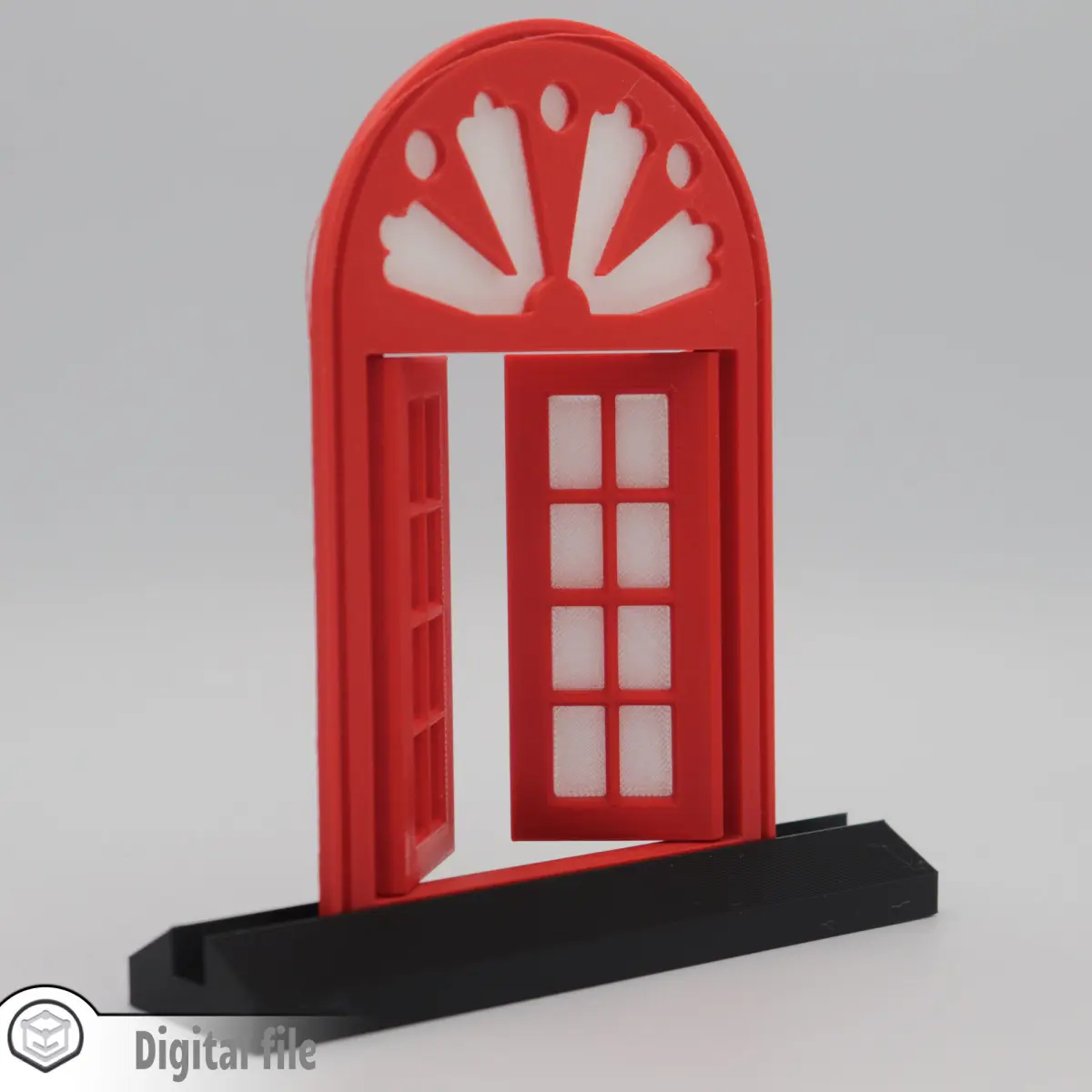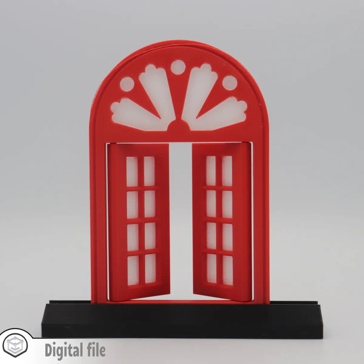 The overall dimensions are 145X94X8 mm. If you would like other dimensions or the model thicken at a certain measurement, please send us a message. We know that every dollhouse has it's particularity.The window will pivot 180 degree. The back panel is extruded 4 mm, so you can attach it to your dollhouse wall.You will receive in the zip file: