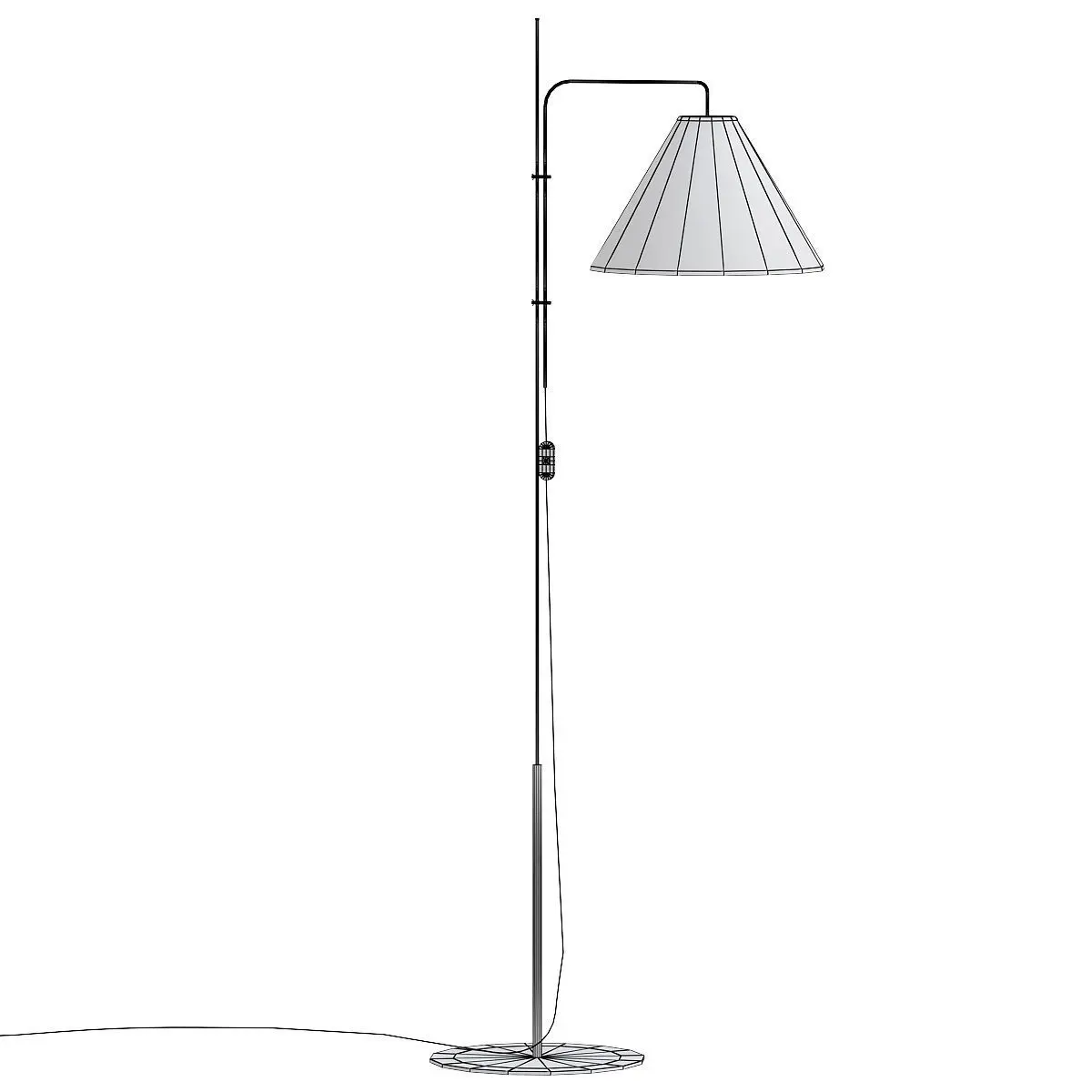 FUNICULÍ FABRIC is an height-adjustable iron floor lamp with polyester shade. Its design has been around a long time, and yet its style remains current and functional. Its light can be direct or indirect, and the height of the light can be adjusted with a set of clips. Heir to the first Funiculí, we offer a version with a fabric shade, a design that Lluís Porqueras first conceived in 1979 but that is only now seeing the light of day. Respecting the initial design to the fullest, only its proportions have been updated. In the fabric version, the cloth on the shade unlocks the light, allowing it to filter through and better illuminate the space. It shares the same structure as the original, so can easily adjust the lamp to your desired height. The essence of both lamps continues to be their simplicity, but this design is chic and classical, perhaps even more sophisticated than the original. This collection comes in floor, table and wall versions and two colours, beige or white, with the black structure.