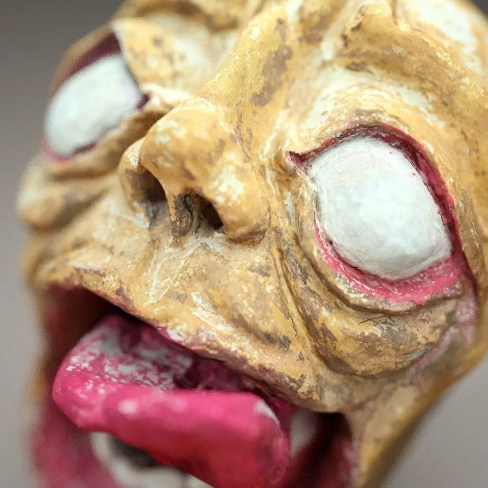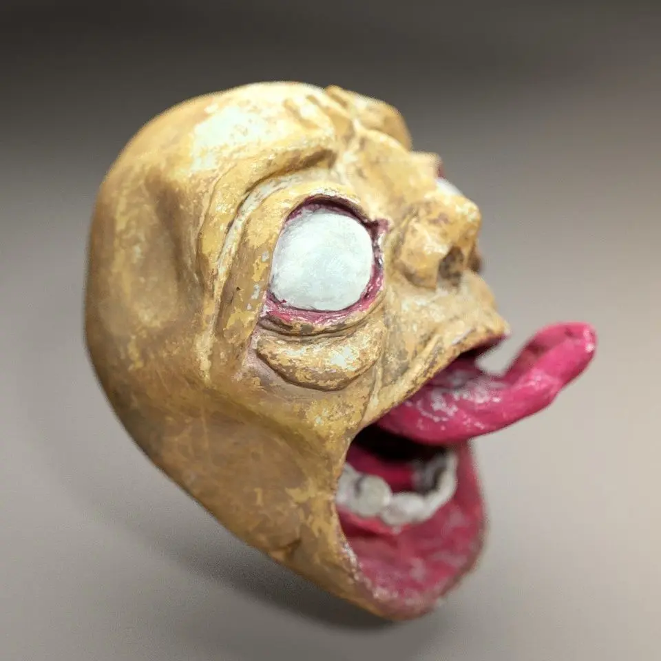 This is was a 3D scan test of hand made piece. Testing how does material translate in digital world. I think it does pretty well. It’s a been sculpted by a friend of mine, and she did it only by a tea spoon. Painted with water colors.