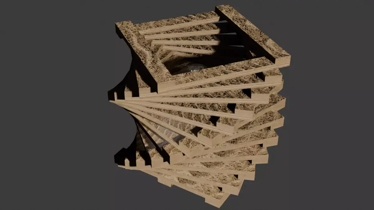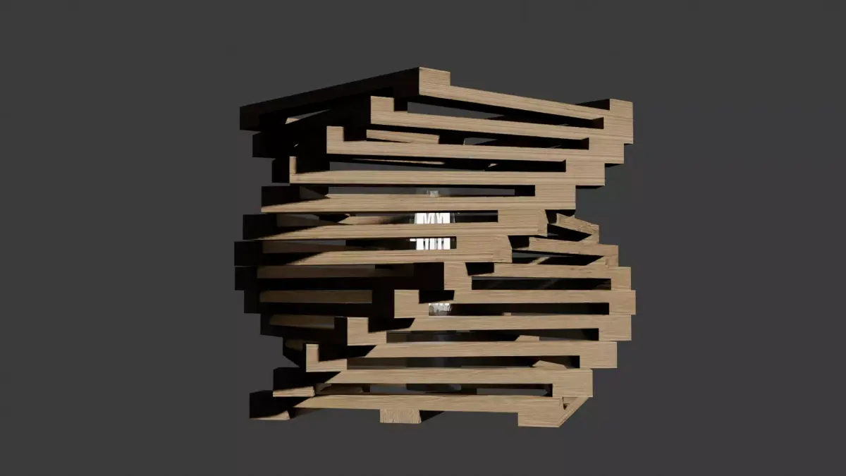 This unique lamp showcases a striking twisted wood design, built from a series of small wooden frames. Each frame is composed of four precisely cut boards joined to form a square, then rotated by 12 degrees before being stacked atop the previous one. The result is a captivating spiral effect that gives the lamp a sense of motion and sculptural depth. The natural wood grain highlights the geometric pattern, and the stacked construction allows light to play beautifully through the angled gaps. It’s both organic and architectural, blending craftsmanship with modern artistic flair. The lamp works perfectly as a statement piece—equally at home in a rustic cabin, a contemporary loft, or an art-inspired interior.
