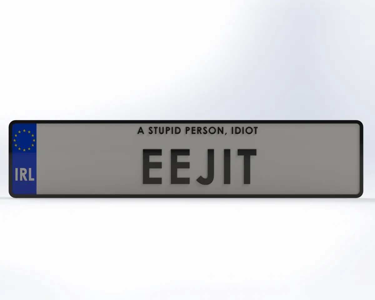 These license plates are a 1:1 scale measuring 112mm x 520mm. The EU stars, country abbreviation and lettering are raised 1mm from the surface. The total thickness of the license plates are 5mm.